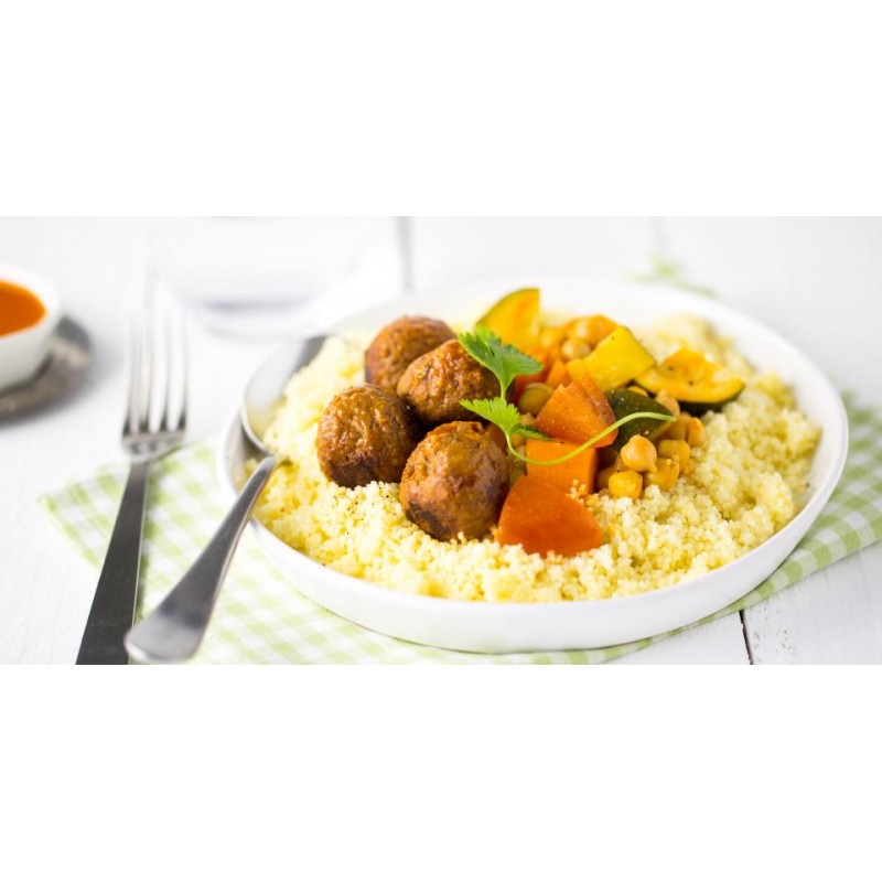 L’authentique couscous, sauce aux 3 légumes, pois chiche, parfumé et accompagné de boulettes de viande maison