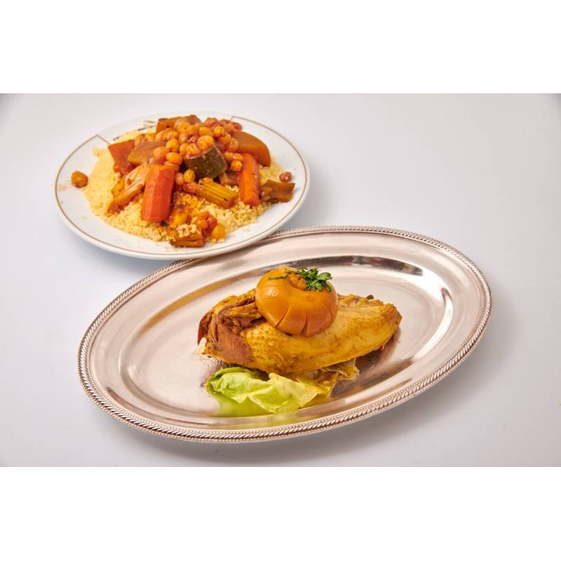 L’authentique couscous, sauce aux 3 légumes, pois chiche, parfumé et accompagné de viande de poulet